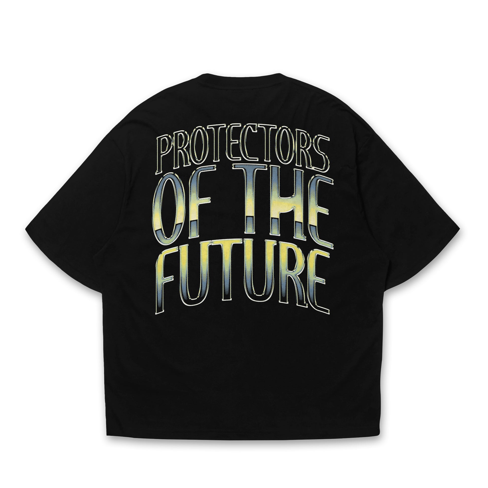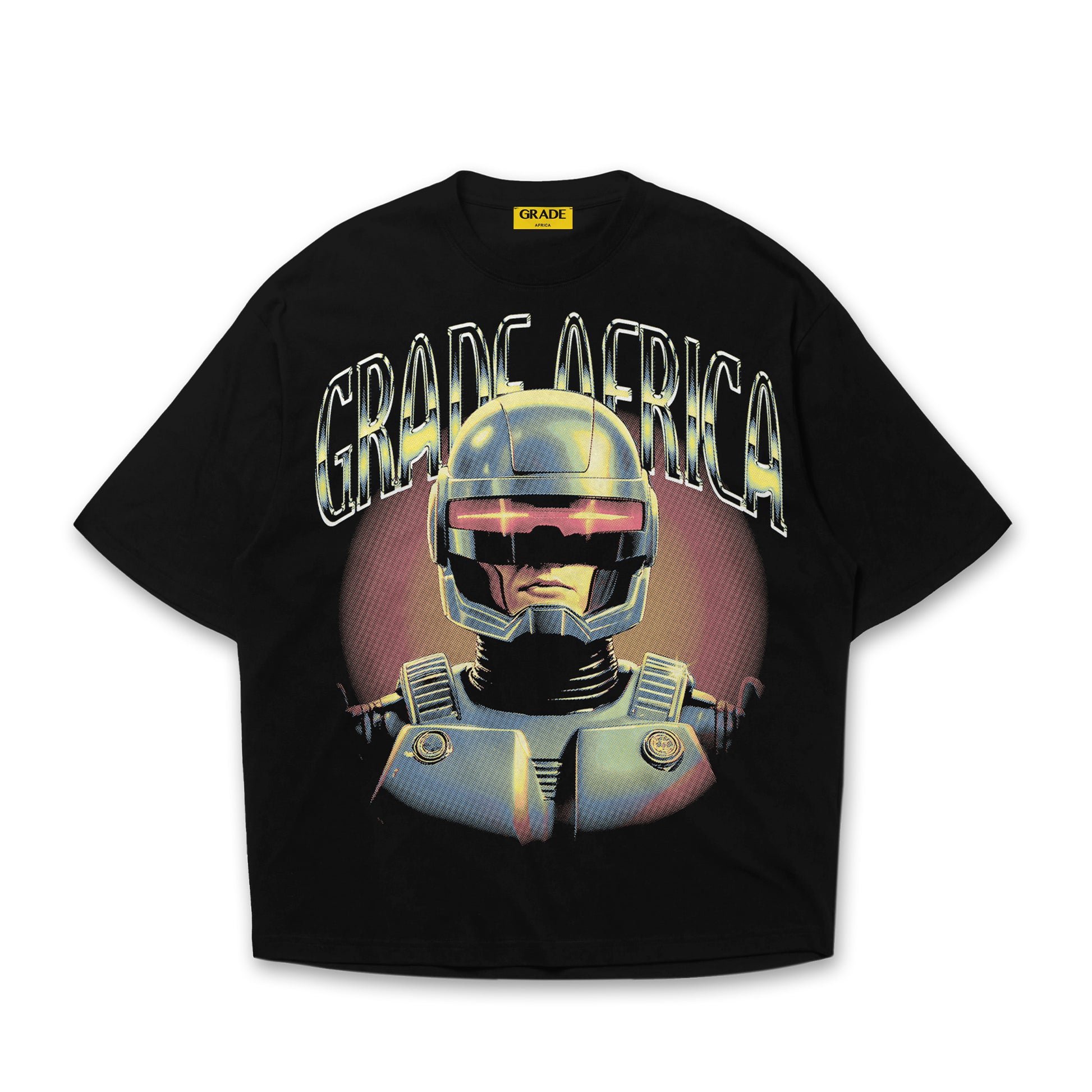 Inspired by RoboCop, this futuristic black tee features a bold robotic design on the front and the statement "Protectors of the Future" on the back. Perfect for those ready to lead the way forward, this tee fuses retro sci-fi vibes with modern streetwear aesthetics.