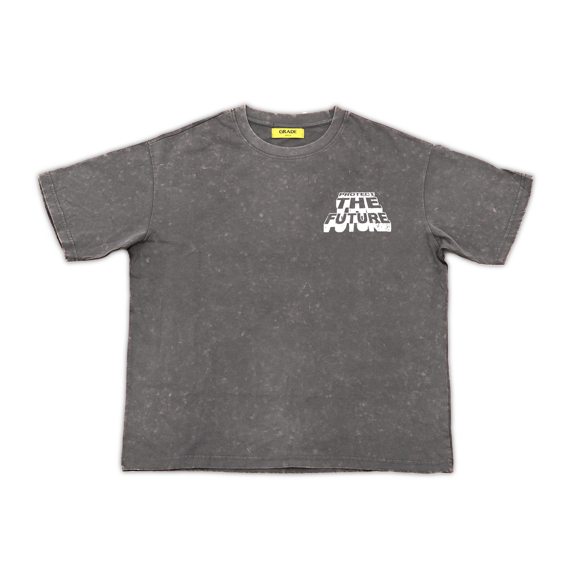 The Protect The Future tee delivers a bold message with effortless style. Crafted from heavyweight cotton in a washed charcoal finish, it features an oversized fit, chest print graphic, and a Protect The Future print on the back. The vintage-inspired fade gives each piece a unique character, making it a standout everyday essential.